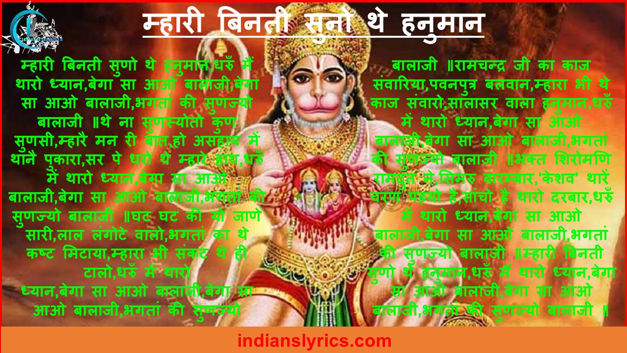 म्हारी बिनती सुनो थे हनुमान – Mhari Vinti Suno The Hanuman